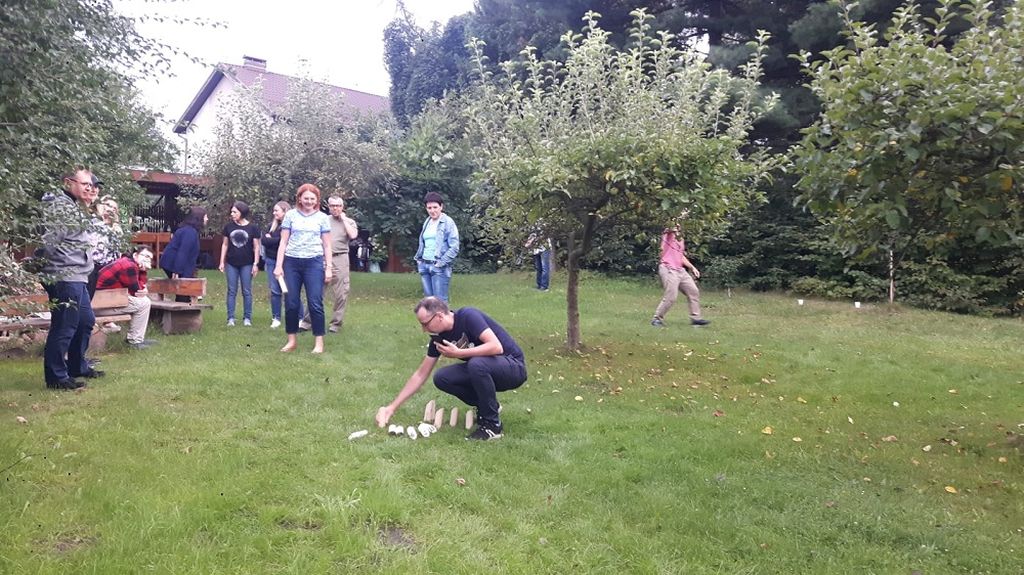 Kilka osób zagrało w badmintona. Prawie wszyscy, łącznie z księdzem, włączyli się w grę w kręgle fińskie, które przyniósł Rafał. Śmiechu było co nie miara. Ostatni punkt to oczywiście sprzątanie :) Na sam koniec ksiądz pobłogosławił nam na szczęśliwy powrót do domów.