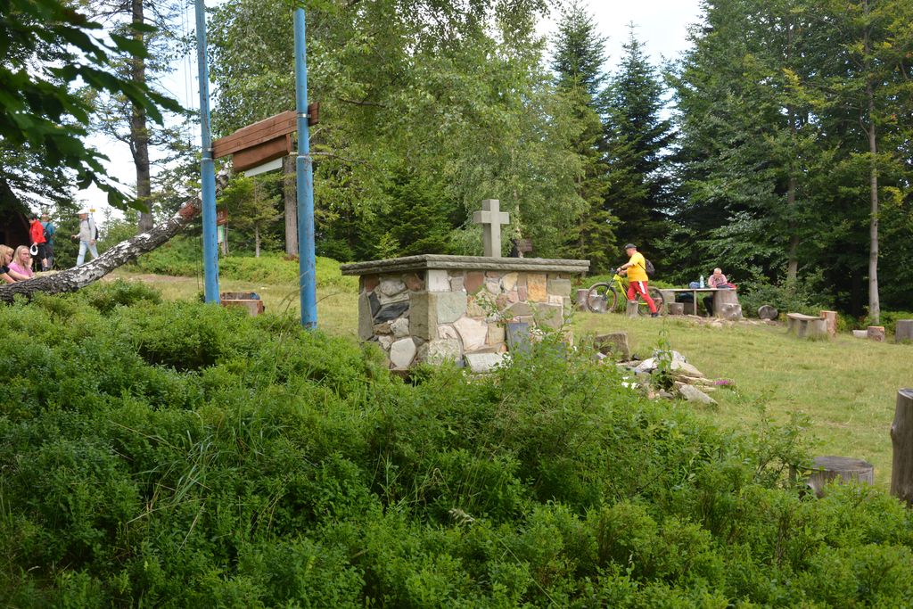 Na przełęczy znajduje się drewniany zajazd „Biały Krzyż”, mieszczący się w osiemnastowiecznej, zrekonstruowanej chacie. W tym zajeździe, bogatym w historię, o czym informuje przed wejściem tablica, postanowiliśmy się posilić przed podróżą. Po obiedzie, w drodze powrotnej zdecydowaliśmy się zatrzymać się na chwilę w Szczyrku, by nawiedzić tamtejsze Sanktuarium Matki Bożej Królowej Polski. Sanktuarium Maryjne usytuowane jest w północnej części miasta, na wysokości 670 m n.p.m., w miejscu potocznie zwanym Górką (stąd inne określenie: „Sanktuarium na Górce”), przy szlaku turystycznym ze Szczyrku na Klimczok. Jak możemy przeczytać na stronie internetowej Sanktuarium, historia kultu Matki Bożej w Szczyrku na Górce rozpoczęła się 25 lipca 1894 roku. Wtedy to 12-letnia Julianna Pezda widziała po raz pierwszy Matkę Bożą. „Jednego dnia rano, kiedy szłam zbierać grzyby, pod bukiem zauważyłam jakąś Panią, miała czarne dłonie i twarz ciemną, brązowe szaty, kiwającą na mnie palcami, wtedy uciekłam do domu” ‒ relacjonowała potem. Mimo początkowego strachu dziewczynka wracała w to miejsce. Udokumentowana tradycja podaje, że od tego dnia Maryja ukazywała się na Górce przez kilka miesięcy, a widzenia były udziałem także trzech innych dziewczynek. Matka Boża objawiała im się, zachęcając do modlitwy. Szczególną uwagę zwróciła na szkaplerz, poleciła także odmawiać Anioł Pański i śpiewać Godzinki. Obiecała, że w miejscu objawień wytryśnie źródło wody, i poleciła wybudowanie tam kaplicy, a w przyszłości kościoła, w którym będzie się odprawiać „dużo Mszy świętych”. Przy świątyni, pięknie położonej, bo na lesistym wzgórzu, zachował się buk, na tle którego objawiała się Matka Boża.