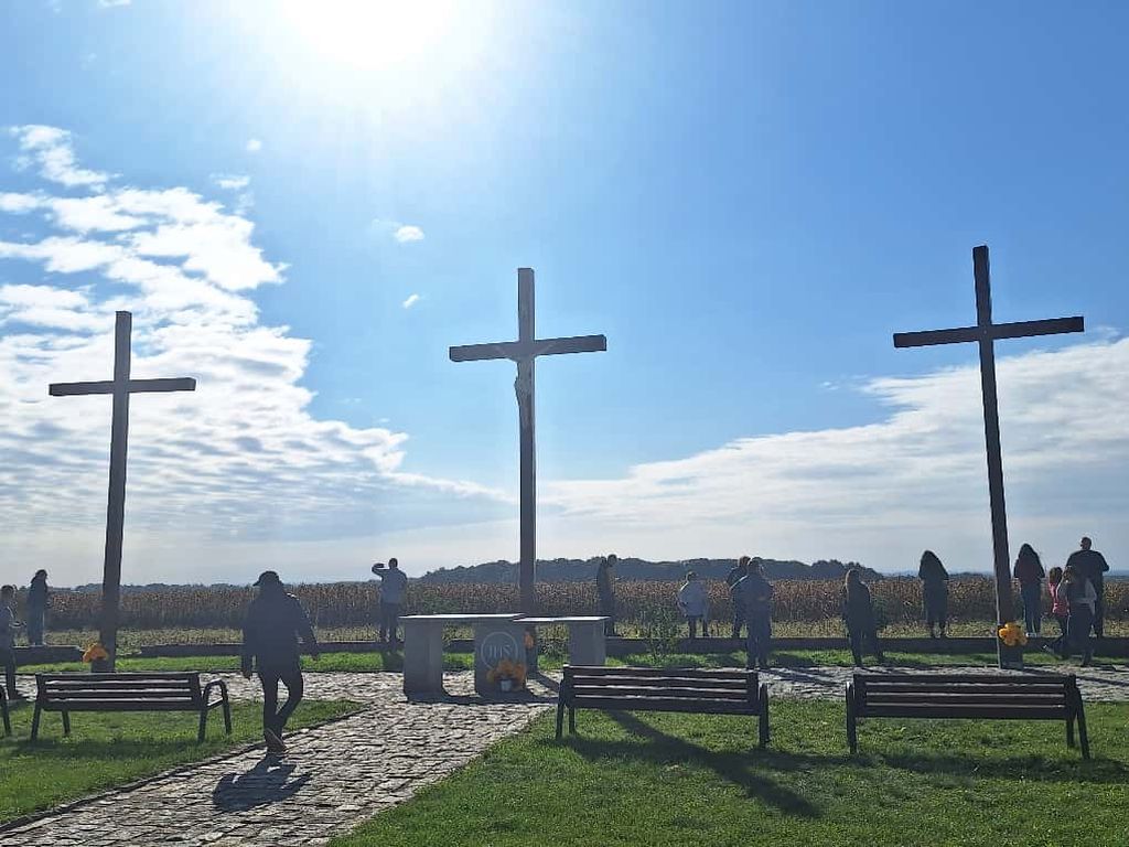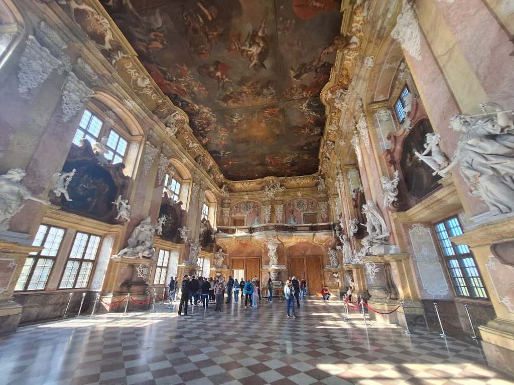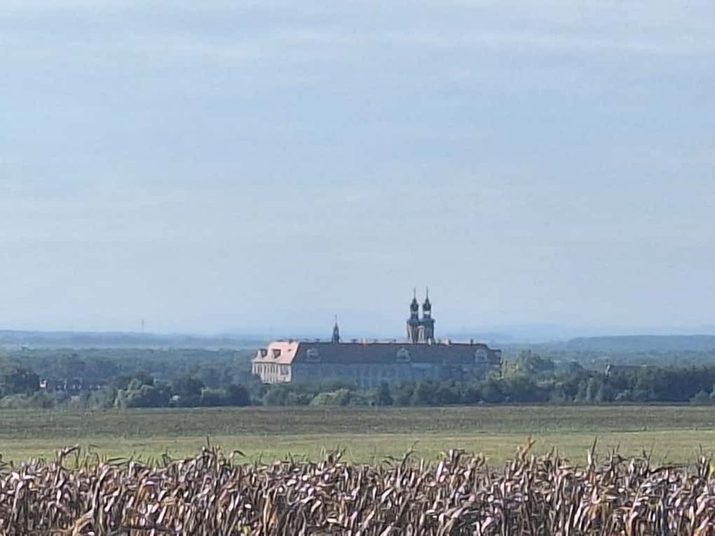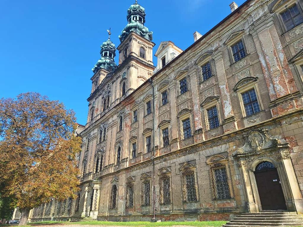 Ze Wzgórza Trzech Krzyży, które powstało pierwotnie z polecenia lubiąskiego opata, najprawdopodobniej jako wotum za oszczędzenie klasztoru przez Szwedów w wojnie 30-letniej, mogliśmy podziwiać z perspektywy olbrzymią bryłę klasztoru. Jego wspaniała, barokowa fasada mierzy 223 metry i jest najdłuższą w Europie. Razem z przewodnikiem zwiedziliśmy wnętrze klasztoru, pałacu opata i kościoła NMP. Szczególnie sala książęca wypełniona freskami Michaela Willmanna i rzeźbami Franciszka Mangoldta zrobiła na nas wrażenie.