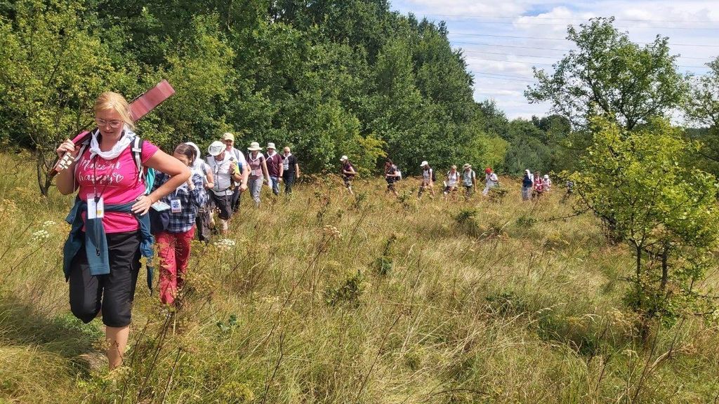 Wędrowaliśmy mijając górę Biakło zwaną Małym Giewontem, szliśmy przez tereny rezerwatu Zielona Góra mogąc uwielbiać Boga w pięknie przyrody. Z kamieniołomu Złota Góra ujrzeliśmy odległe jeszcze wieże Jasnej Góry.