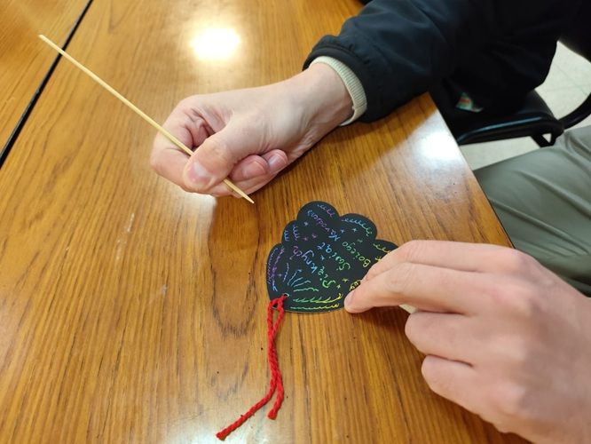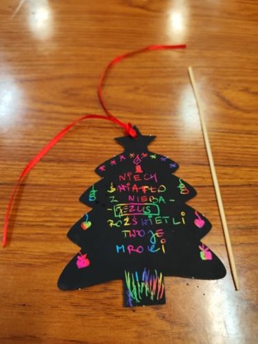 Rozpoczęliśmy cichą adoracją Najświętszego Sakramentu, po niej celebrowaliśmy roratnią Eucharystię, modląc się m.in. w intencji grudniowych solenizantów. Potem w auli w ramach przedświątecznej twórczości wydziergaliśmy... wyjątkowe zdrapki z życzeniami na Boże Narodzenie - jedni bardziej literacko, inni malarsko. Wzajemnie się nimi obdarowaliśmy - zgodnie z kierunkiem "prawy do lewego";)