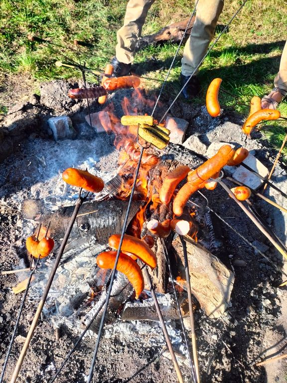 Sobota była tak pięknym i ciepłym dniem, że nie mogło obejść się bez integracji na świeżym powietrzu. Jarek, Tomek i Rafał przygotowali iście po męsku ognisko nad Odrą, na którym upiekliśmy pyszne kiełbaski. Menu nie ograniczyło się jednak tylko do kiełbasek ale były również pieczone ziemniaki, warzywa oraz skrzydełka z Biedronki (musiała być naprawdę duża 😉). Były rozmowy, gra w piłkę, a po zmroku śpiewy przy ognisku. Nasze ostatnie spotkanie jeszcze w letniej atmosferze zakończyliśmy Apelem Jasnogórskim.